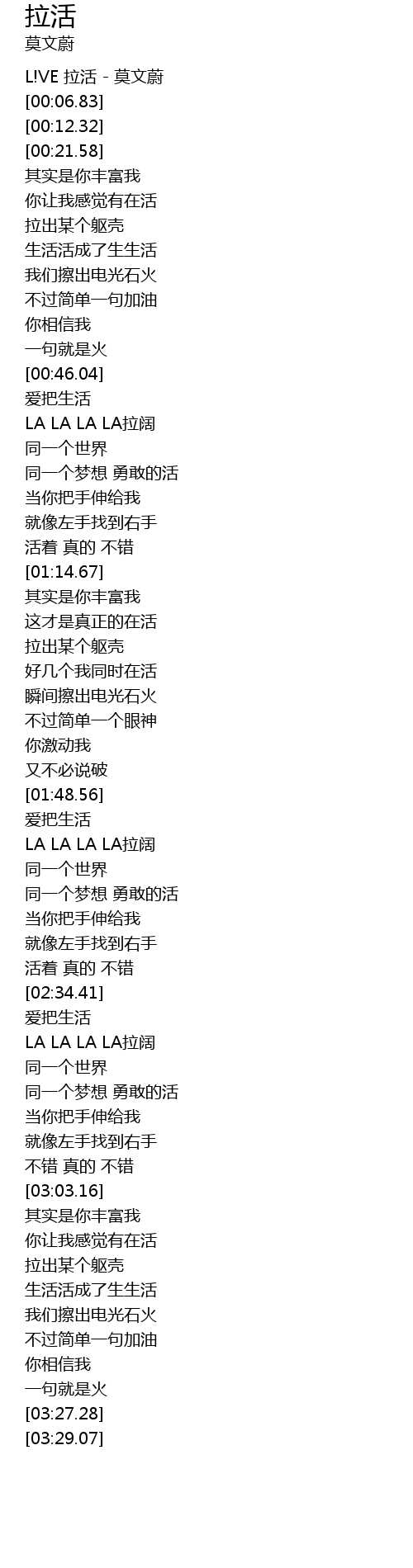 | [00:02.56] | L!VE 拉活 - 莫文蔚 |