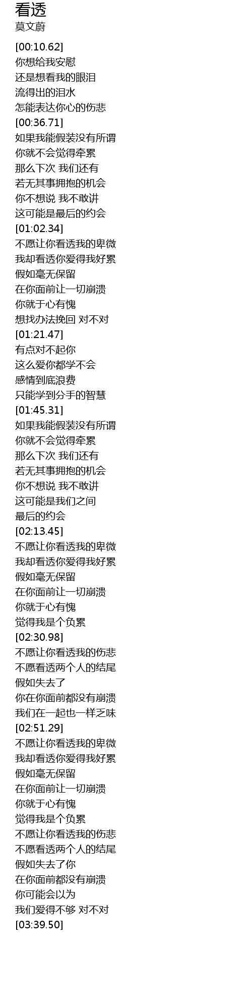 | [03:02.85] | 不愿让你看透我的卑微 |