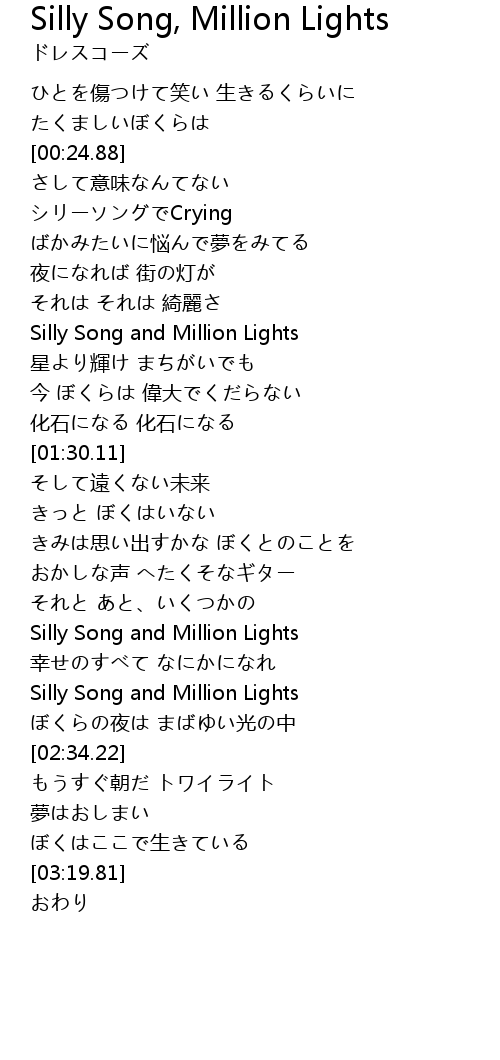 | [01:02.22] | Silly Song and Million Lights |