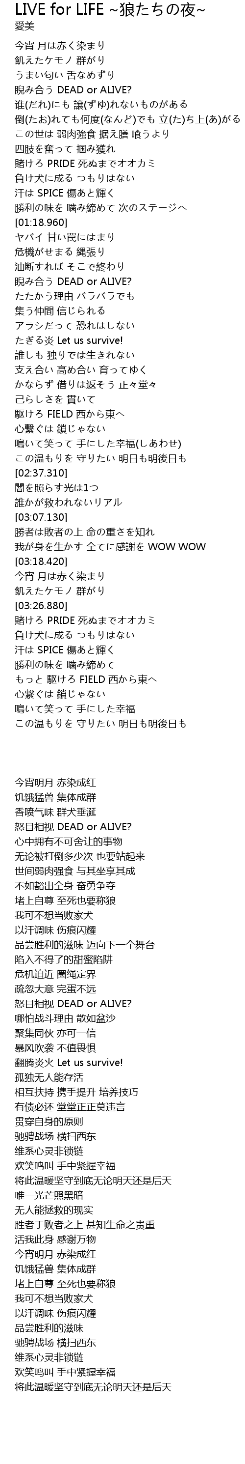 | [00:54.240] | 賭けろ PRIDE 死ぬまでオオカミ |