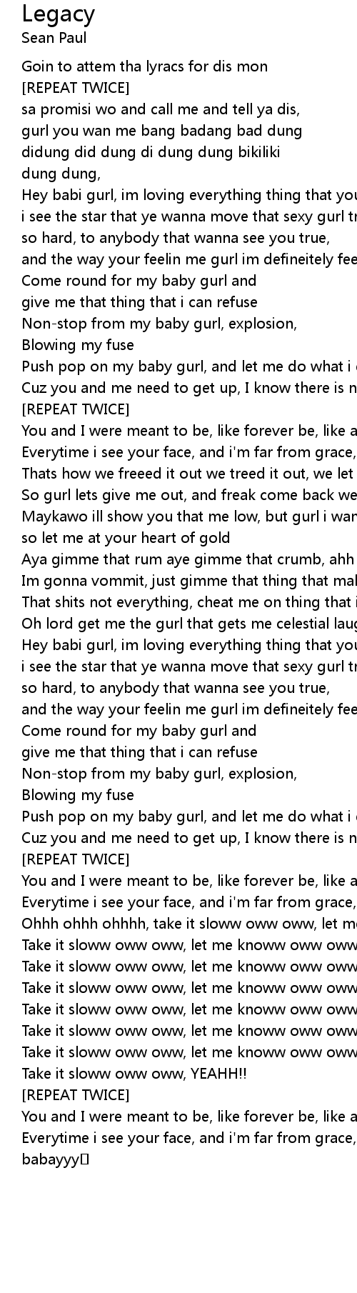| You and I were meant to be, like forever be, like a legacy baby | |