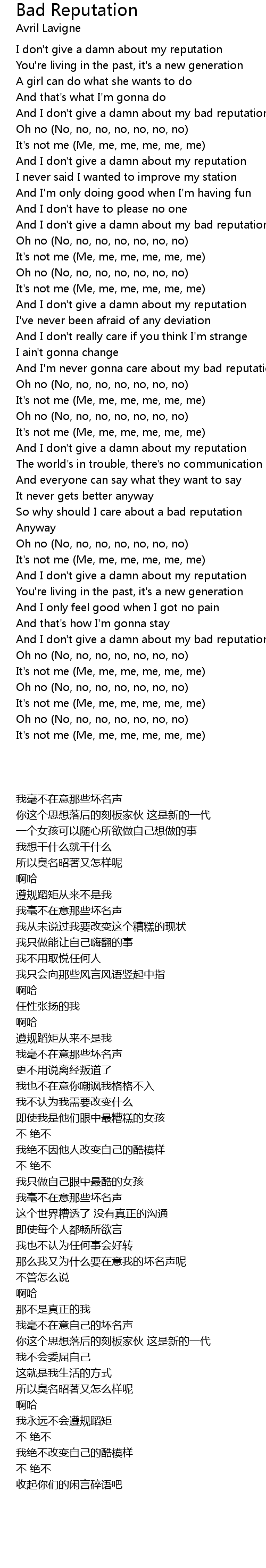 Song Bad Reputation
