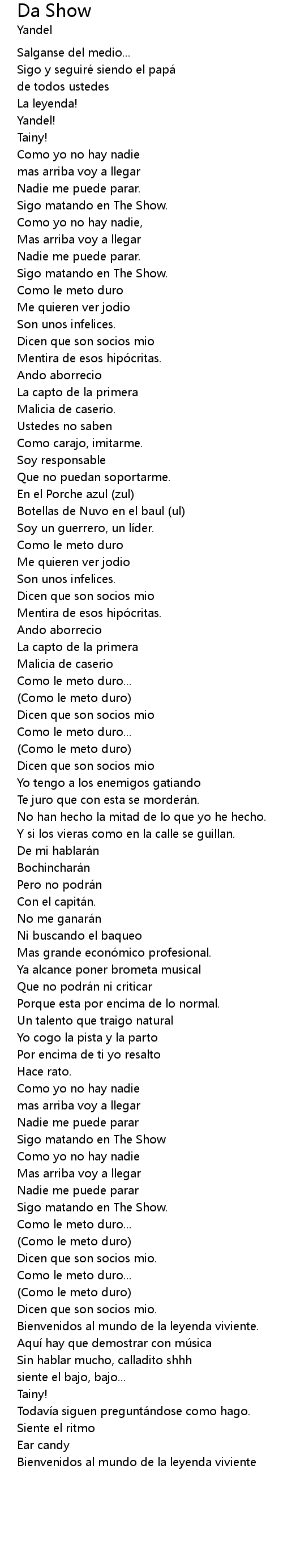 | Song | Da Show |