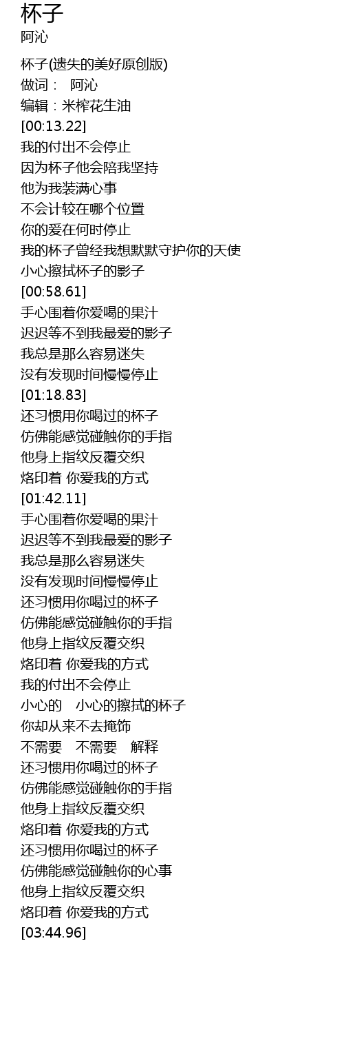 | [00:05.01] | 杯子(遗失的美好原创版) |