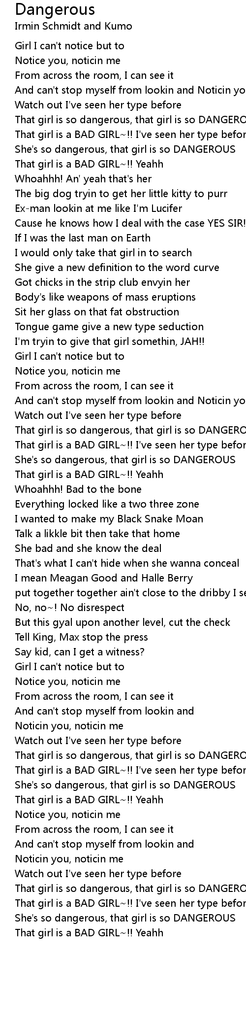 She's so dangerous, that girl is so DANGEROUS |