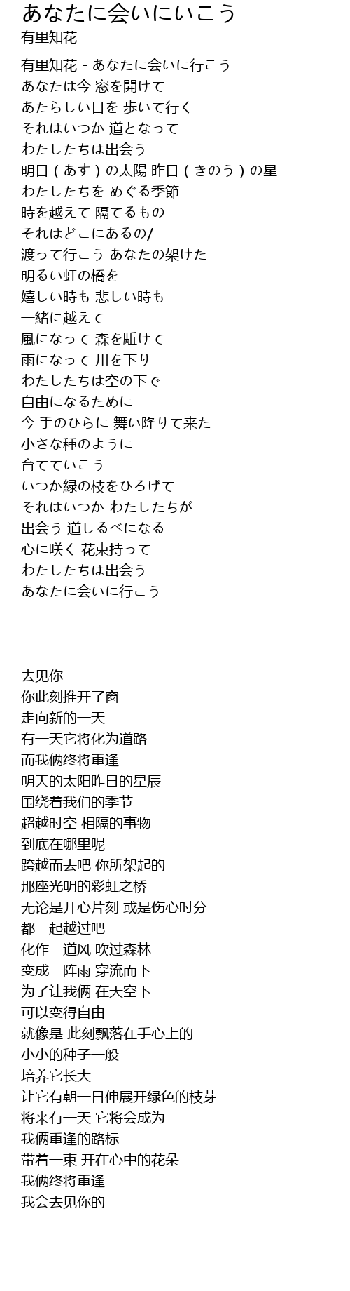 | [00:01.510] | 有里知花 - あなたに会いに行こう |