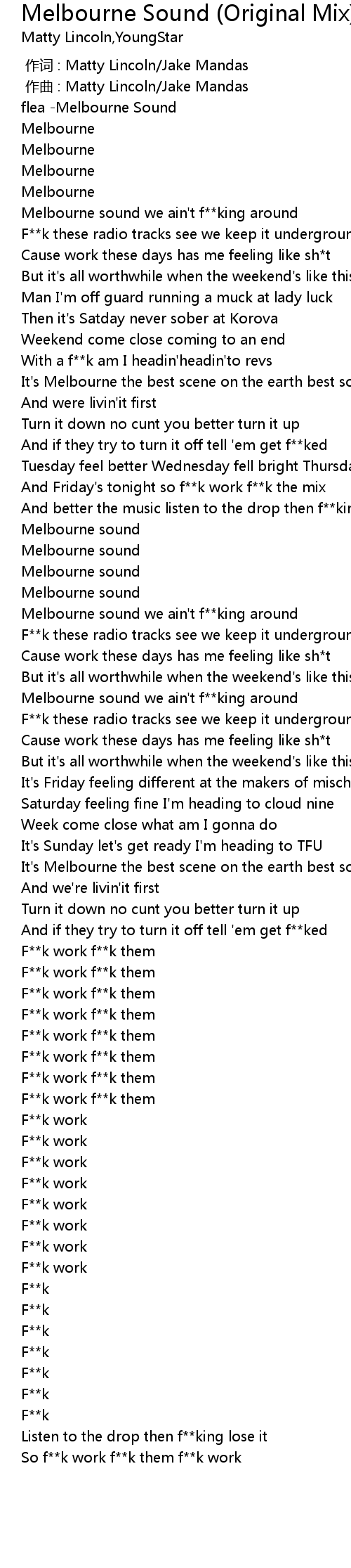 | [01:00.53] | Melbourne sound we ain't f**king around |