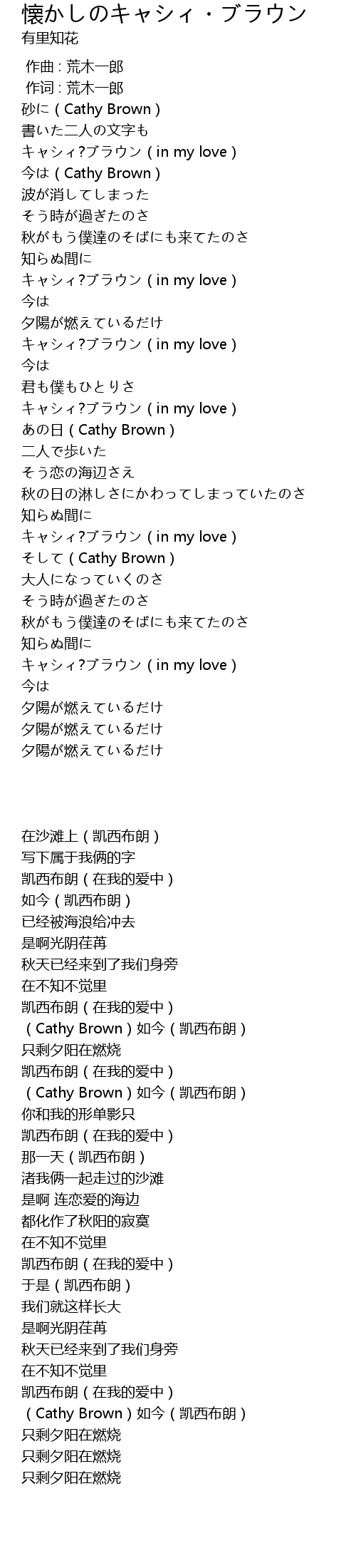 | [01:19.940] | キャシィ?ブラウン(in my love) |