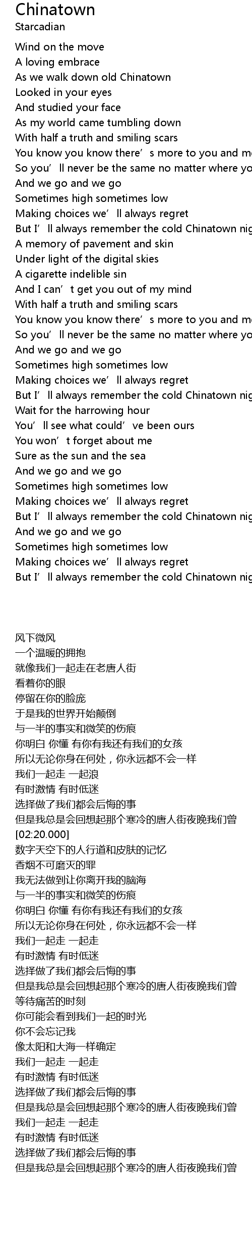 | [03:08.500] | But I' ll always remember the cold Chinatown night we had |