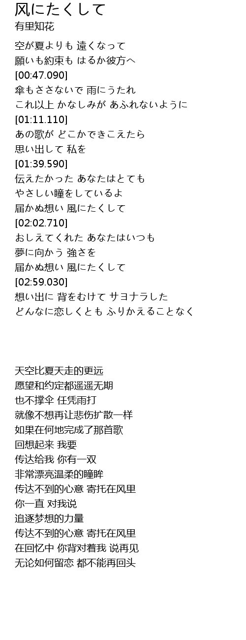 届かぬ想い 風にたくして |