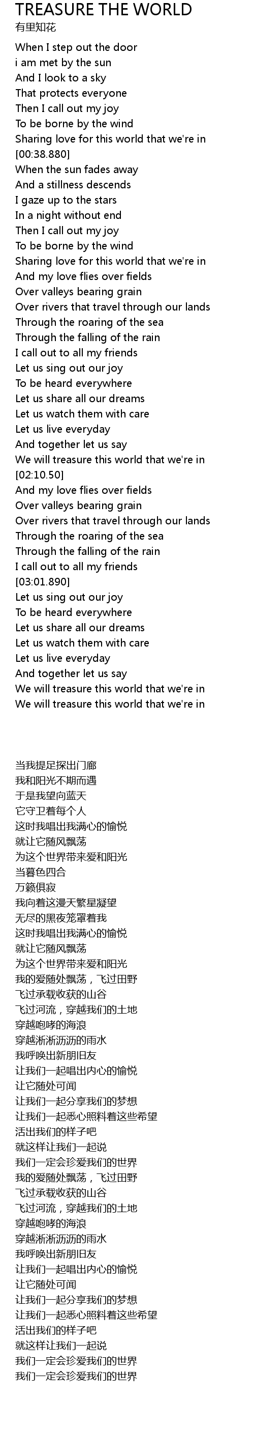 We will treasure this world that we're in |