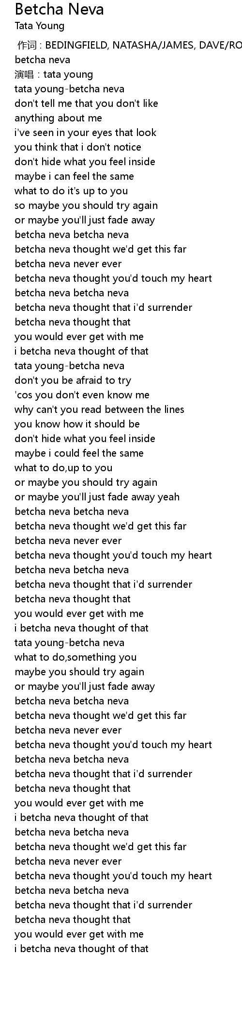 | [01:57.16] | tata young-betcha neva |