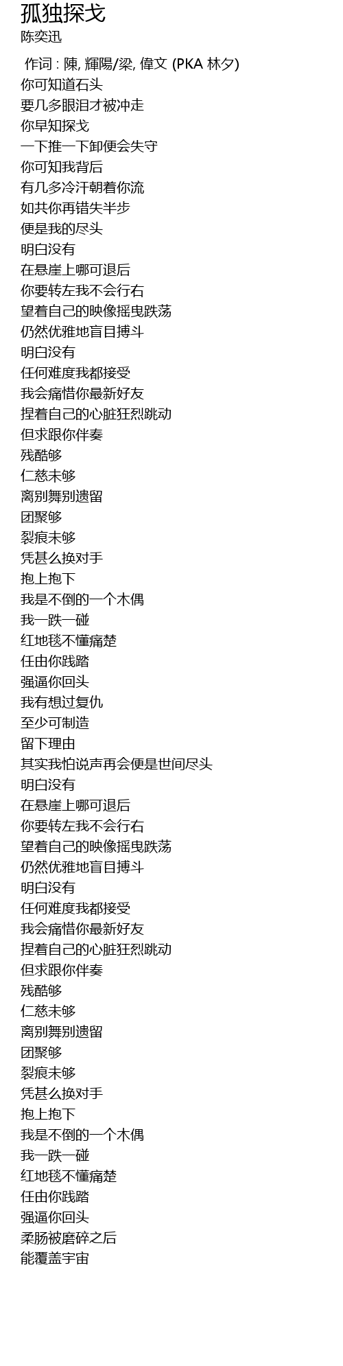 | [00:00.00] | 作词 : 陳, 輝陽/梁, 偉文 (PKA 林夕) |