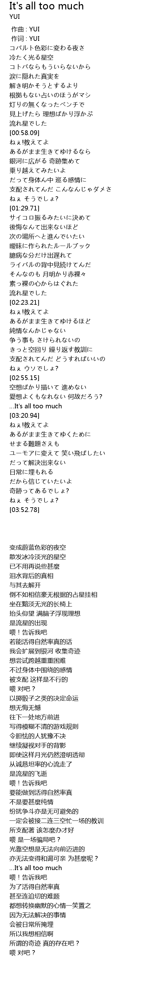 | [00:01.00] | 作词 : YUI |