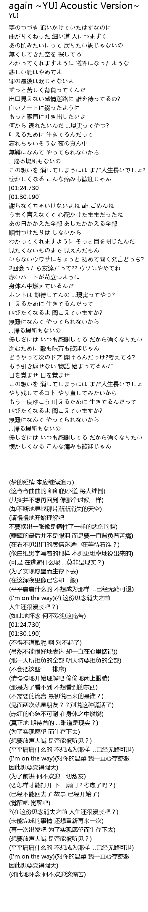 | Song | again ~YUI Acoustic Version~ |