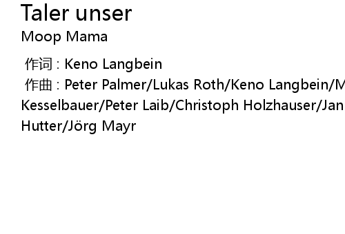 | [00:00.000] | zuo qu : Peter Palmer Lukas Roth Keno Langbein Menzel Mutzke Marcus Kesselbauer Peter Laib Christoph Holzhauser Jan R ler Johannes Gei Martin Hutter J rg Mayr |