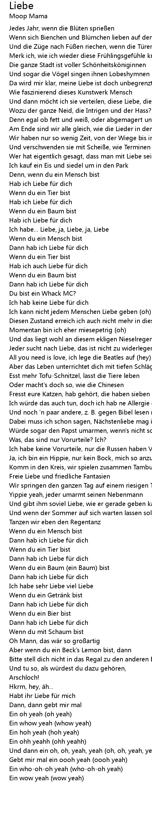 | Ich habe... Liebe, ja, Liebe, ja, Liebe | |