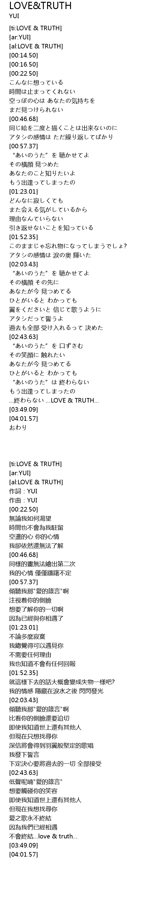 | [03:39.30] | …終わらない …LOVE & TRUTH… |