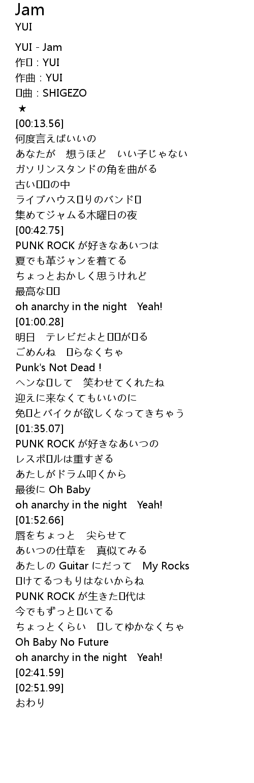 | [00:00.00] | YUI - Jam |