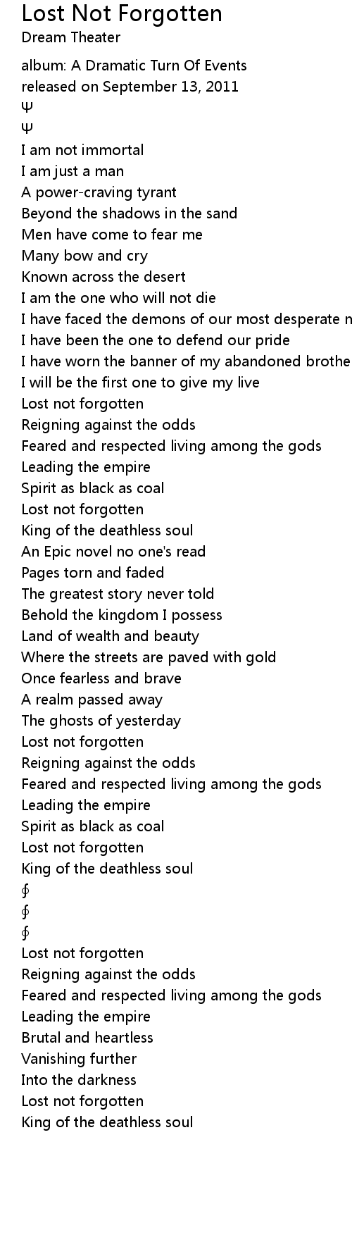 | Song | Lost Not Forgotten |
