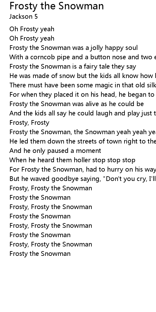 Frosty the Snowman, the Snowman yeah yeah yeah yeah |