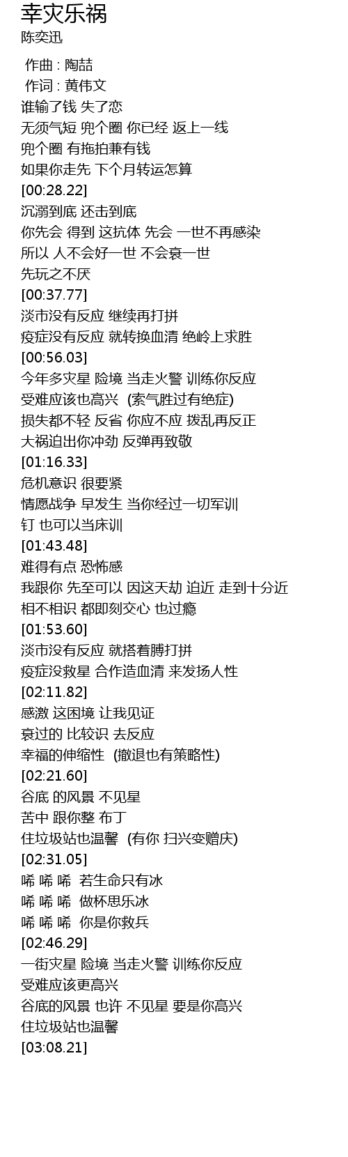 | [01:02.28] | 受难应该也高兴 (索气胜过有绝症) |