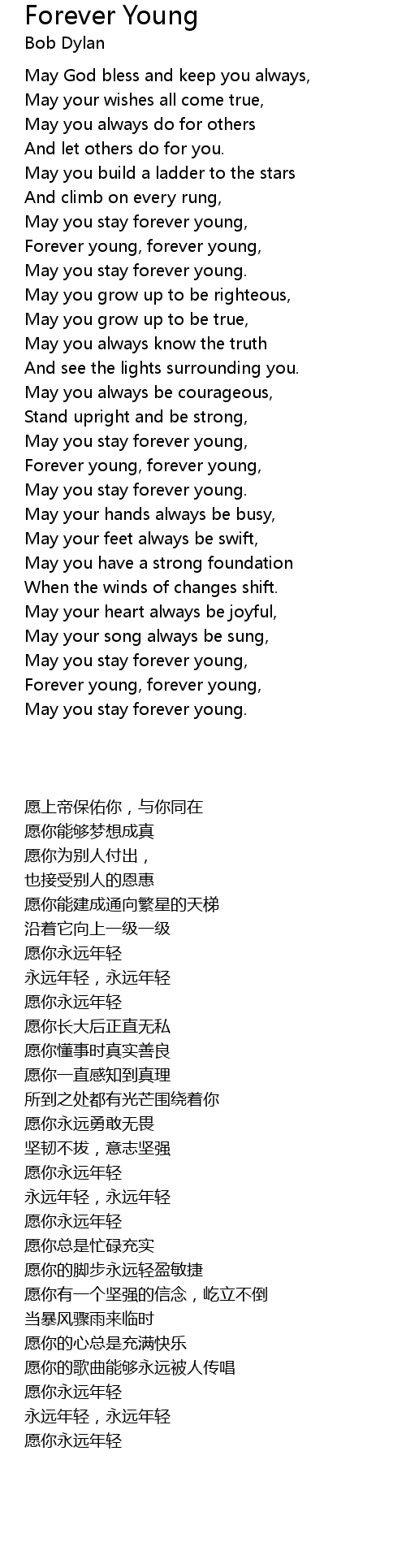 May you stay forever young, |