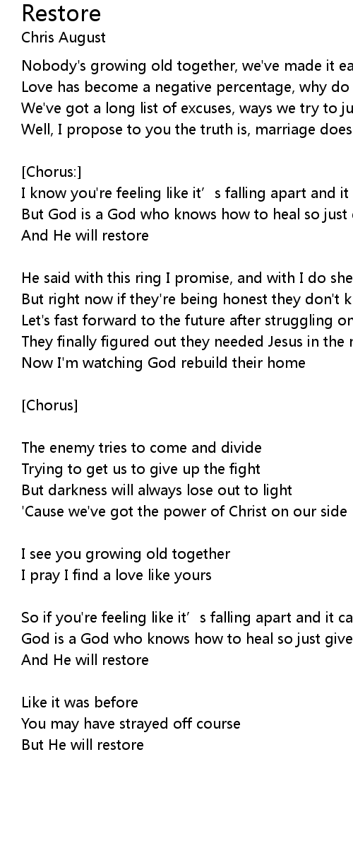 | Song | Restore |
