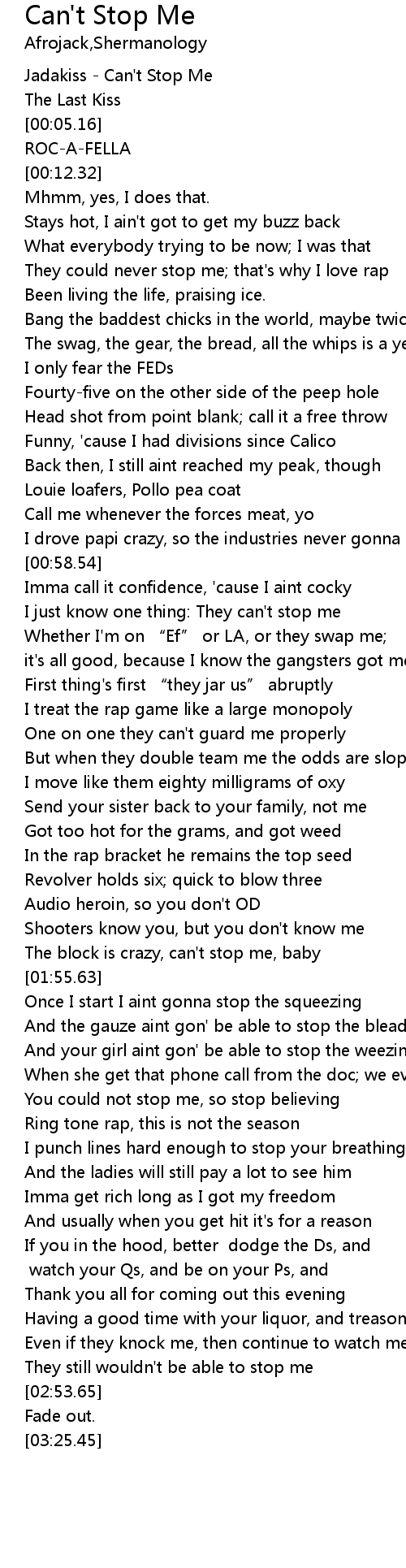 | [00:00.88] | Jadakiss Can' t Stop Me |