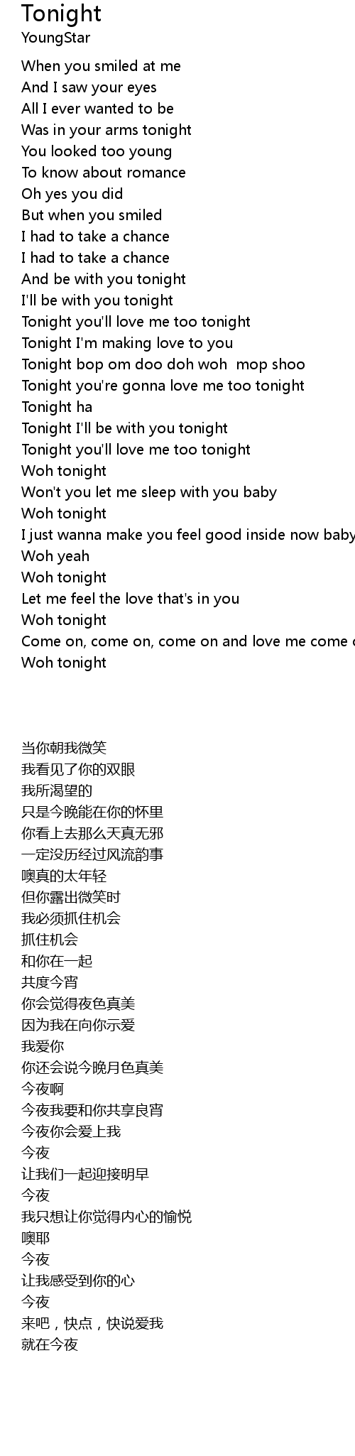 Tonight you'll love me too tonight |