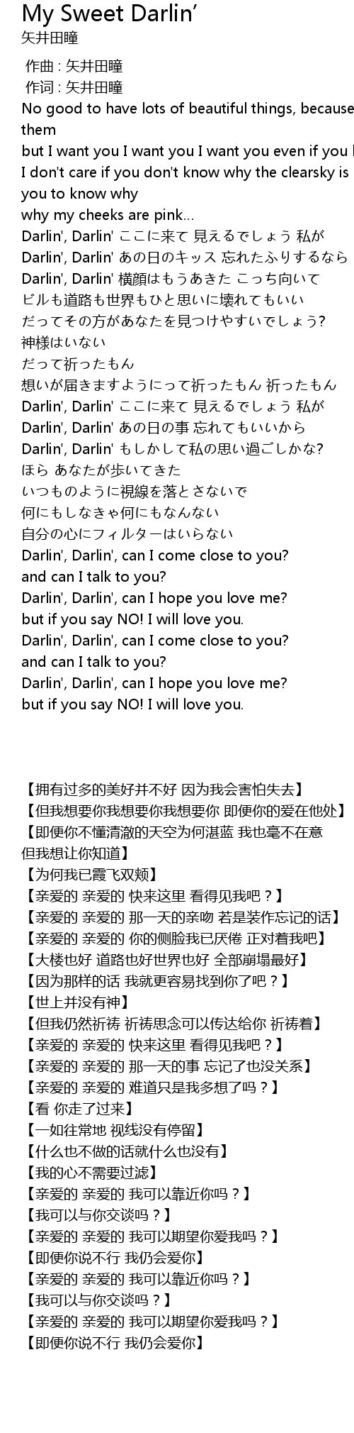 | [02:33.43] | Darlin', Darlin', can I come close to you? |