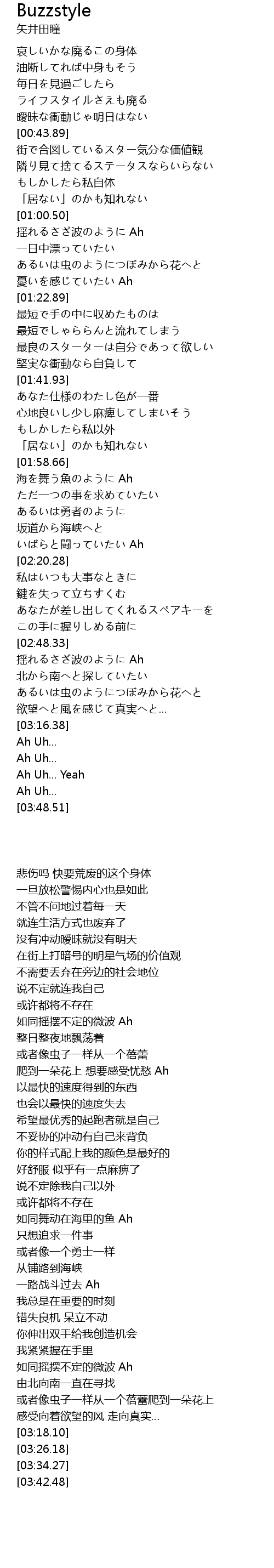 | [00:44.20] | 街で合図しているスター気分な価値観 |