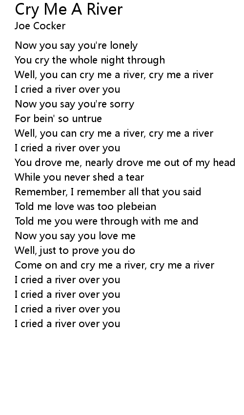 Come on and cry me a river, cry me a river |