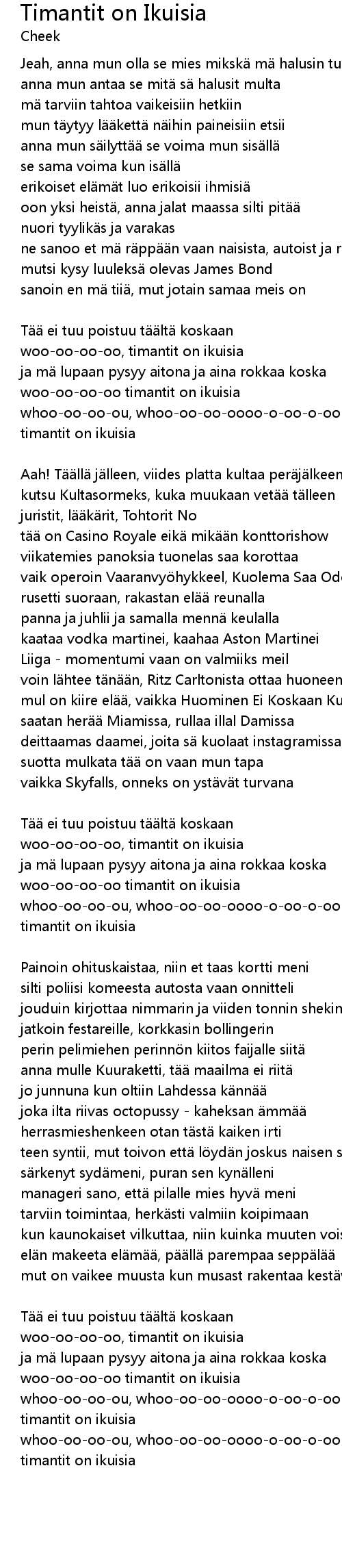 | Tää ei tuu poistuu täältä koskaan | |