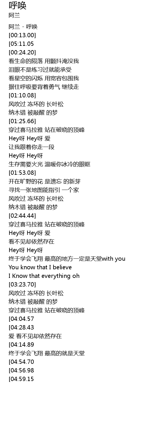 | [00:00.16] | 阿兰 - 呼唤 |