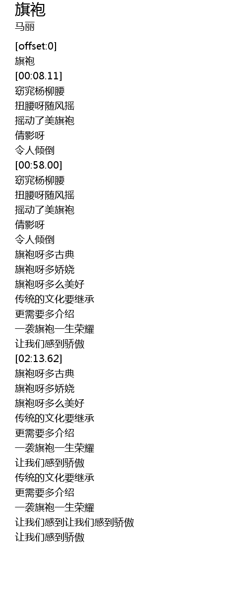 | [01:40.59] | qí páo ya duō me měi hǎo |