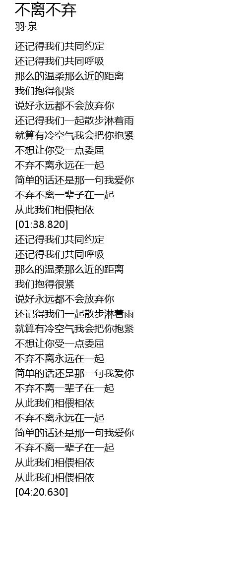 | [03:15.100] | 不弃不离一辈子在一起 |