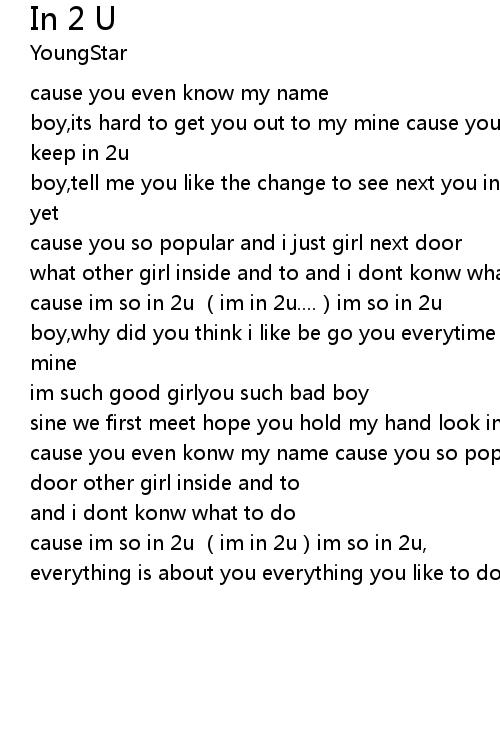 | [00:53.06] | cause im so in 2u im in 2u.... im so in 2u |