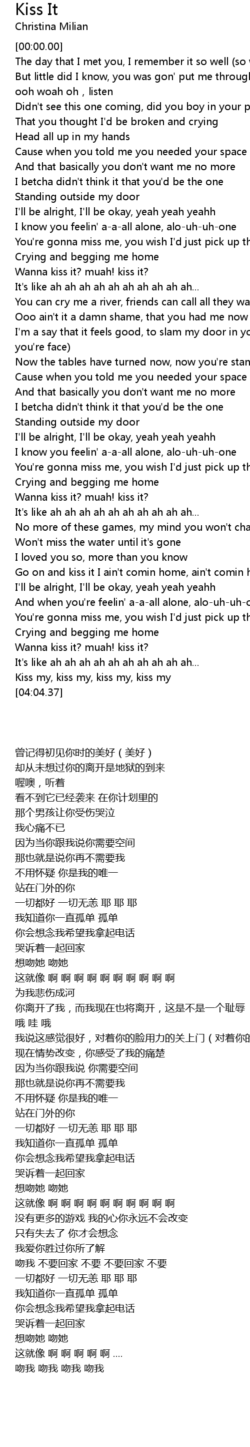 | [02:34.12] | Wanna kiss it? muah! kiss it? |