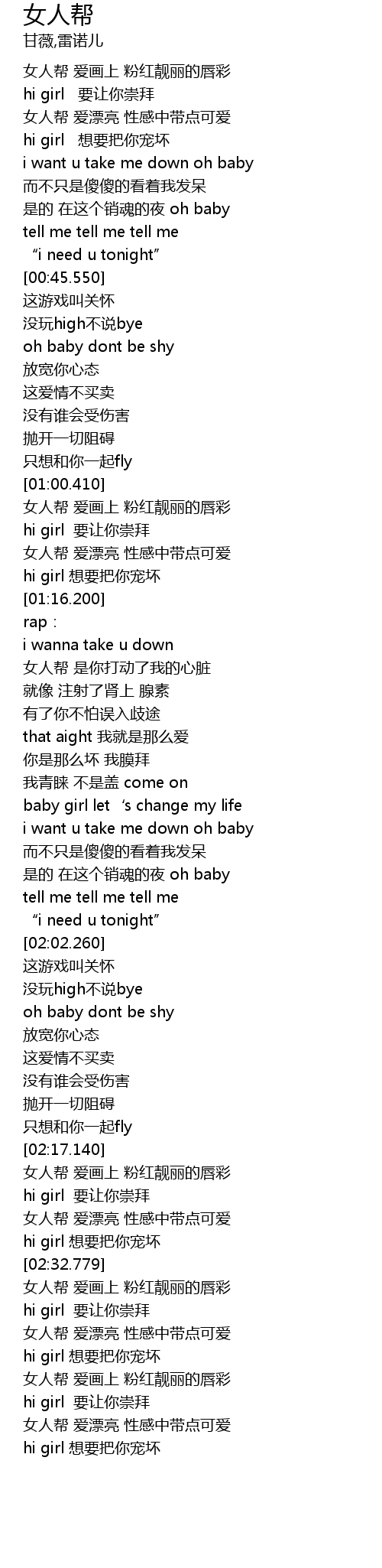 | [02:25.119] | 女人帮 爱漂亮 性感中带点可爱 |