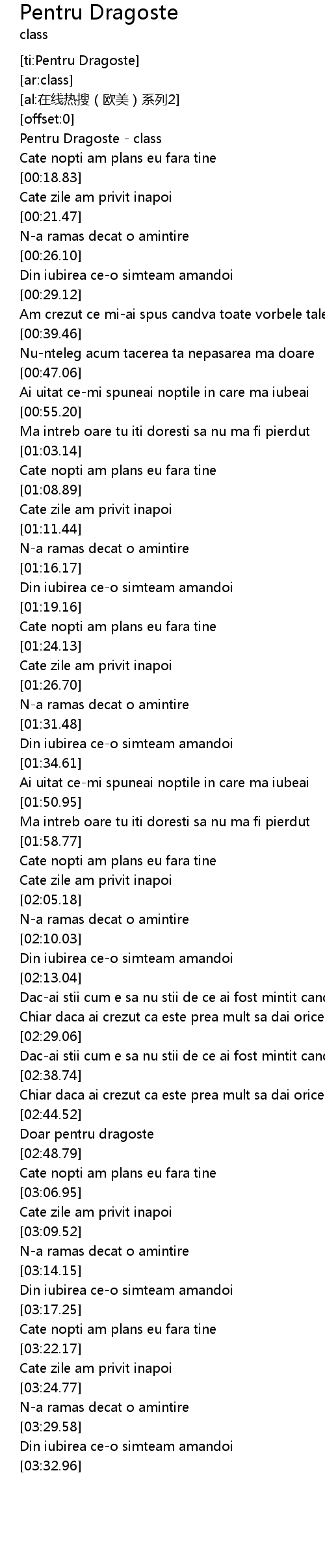| [02:32.38] | Dac-ai stii cum e sa nu stii de ce ai fost mintit cand ai iubit |