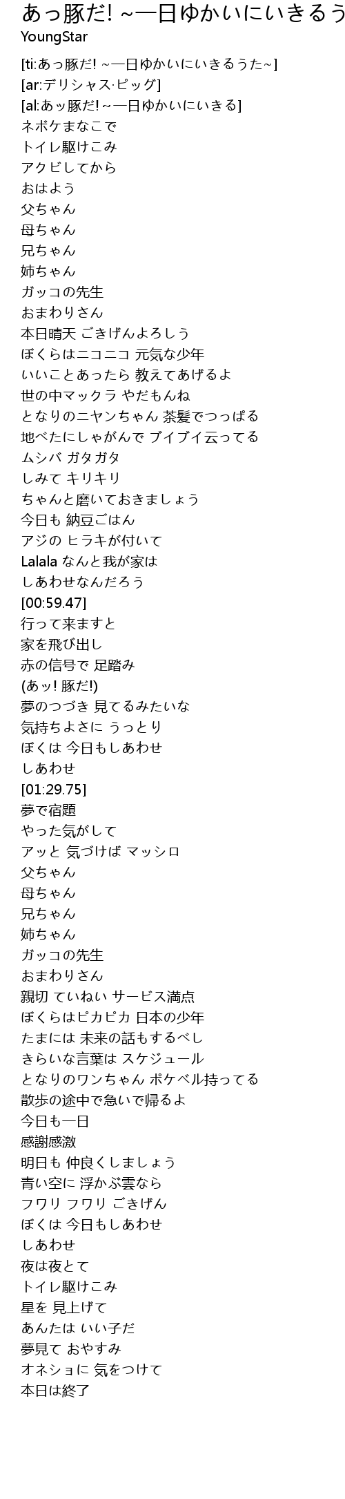 | [ti:あっ豚だ! ~一日ゆかいにいきるうた~] | |