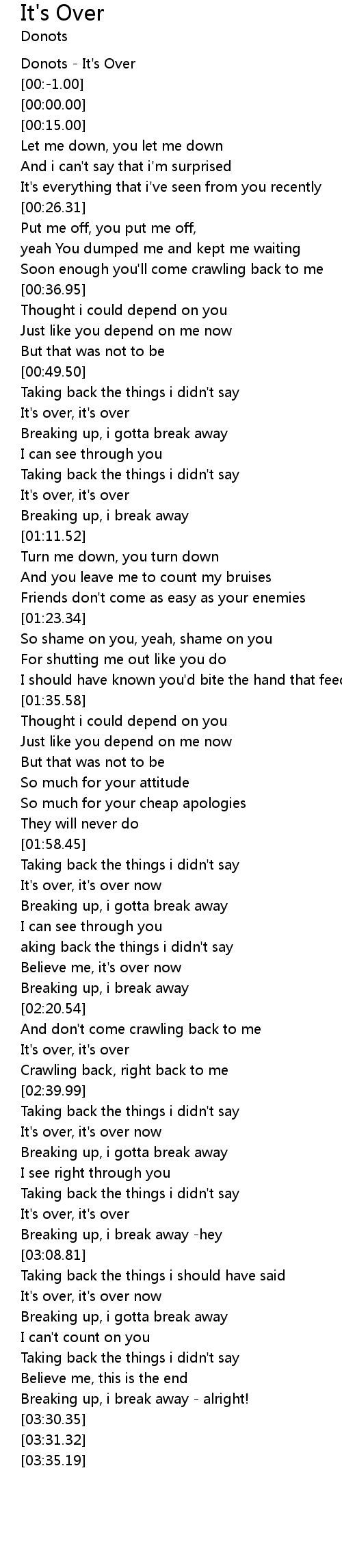 | [03:12.55] | It's over, it's over now |