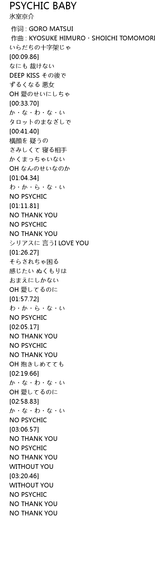 | [03:06.88] | NO PSYCHIC |