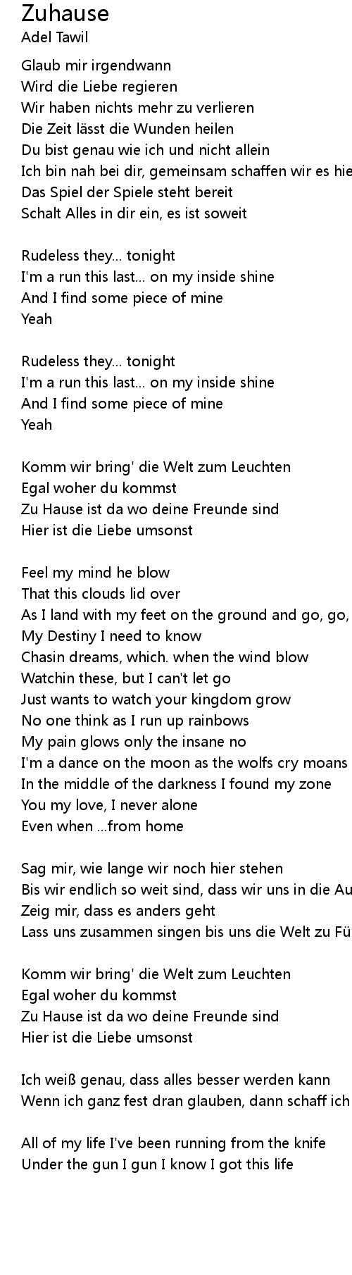 | Lass uns zusammen singen bis uns die Welt zu Fü en liegt | |