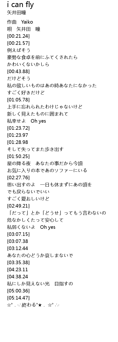 | [04:48.34][04:38.24][04:17.97] | i can fly without you |