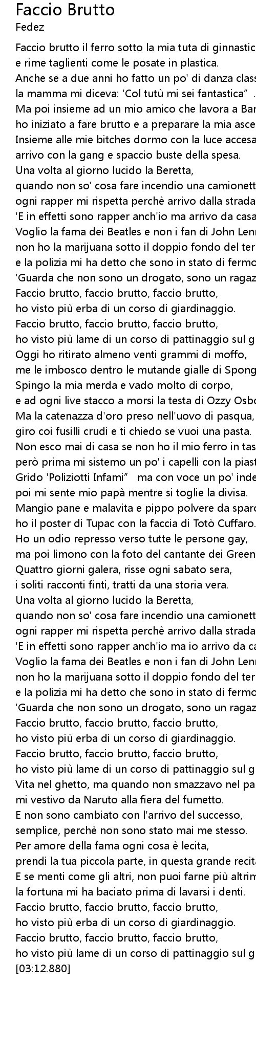 | [03:02.110] | Faccio brutto, faccio brutto, faccio brutto, |