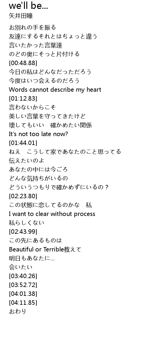 | [03:13.27] | Beautiful or Terrible教えて |