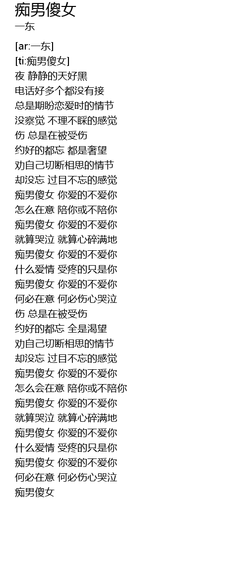 | [01:35.11] | 痴男傻女 你爱的不爱你 |