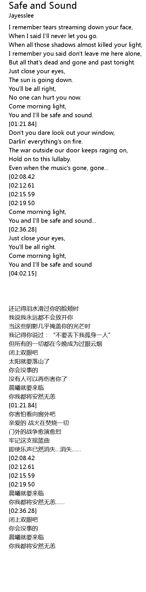 | [03:52.28] | You and I'll be safe and sound |